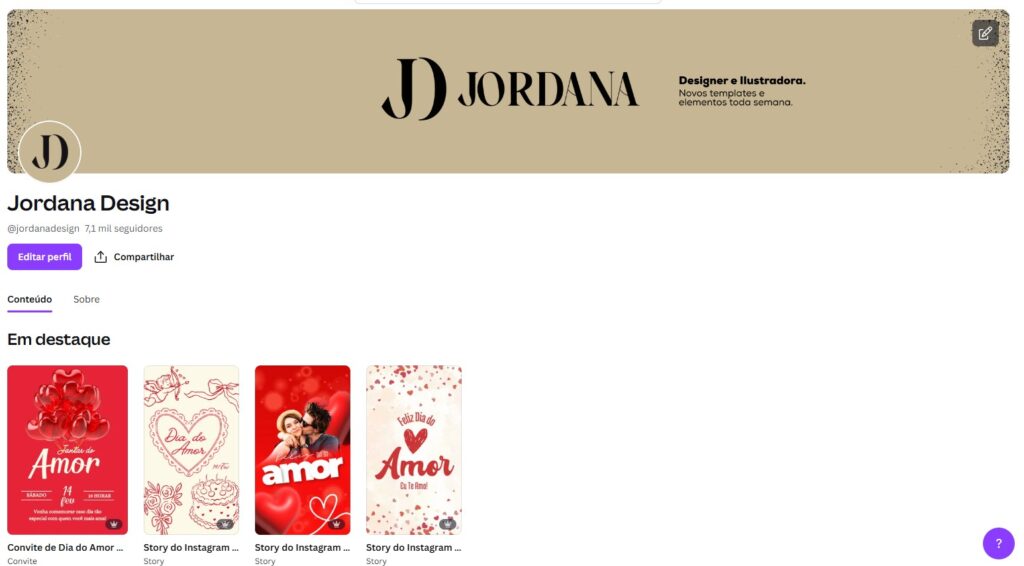 Abaixo coloco o link do meu perfil no Canva, com meus melhores designs. Siga-me para acompanhar os meus designs mais recentes!